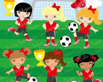 Buy 3 Get 1 Free Soccer Clipart Soccer Girl Sports Clip Art Red Team World Cup Olympics Soccer Player Planner African American By I 365 Art Catch My Party