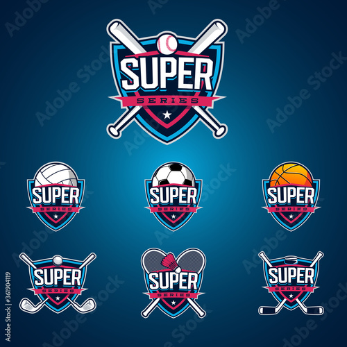 Sport Logo Set Baseball Softball Volleyball Soccer Football Basketball Golf Badminton Hockey Professional Collection Of Emblems Buy This Stock Vector And Explore Similar Vectors At Adobe Stock Adobe Stock