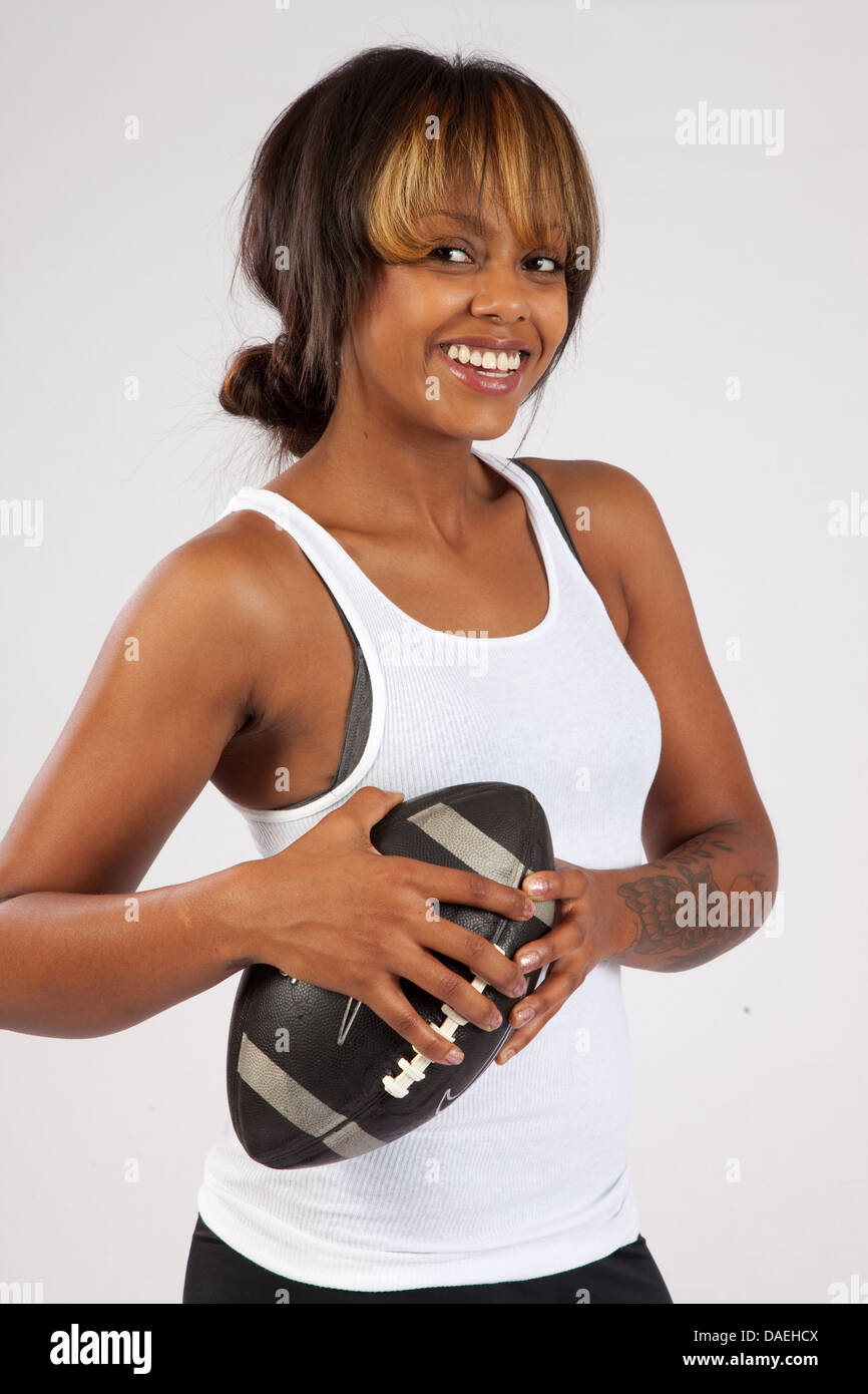 Young Man In Black Undershirt Playing With Football Ball Right Stock Photo Picture And Royalty Free Image Image 29591110
