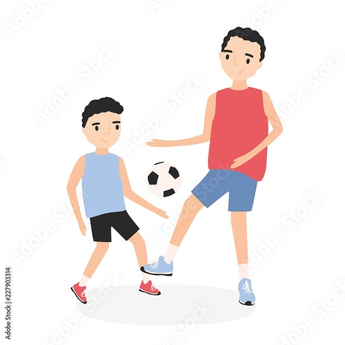 Father Son Playing Football Cartoon Characters Stock Vector Royalty Free 1212450376