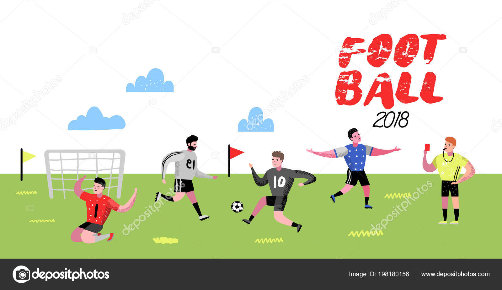 Soccer Cartoon Players Poster Placard Football Player In Uniform Sportsman Characters Banner Sport Athletes Playing Football Vector Illustration Stock Vector C Vectorlab 198180124