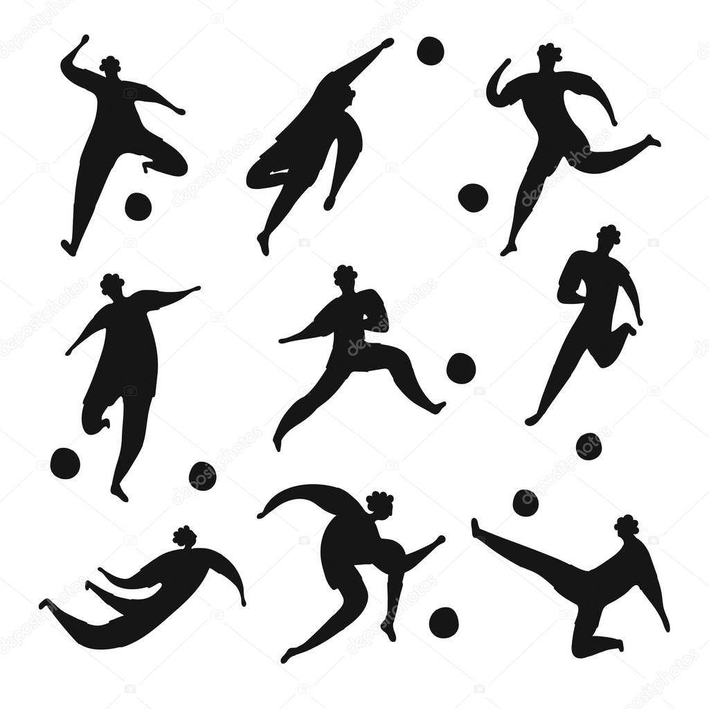 Football Players Of One Team With Ball Isolated Illustration Set Flat Cartoon Characters In Simple Childish Style Vector Drawings Royalty Free Vector Graphics