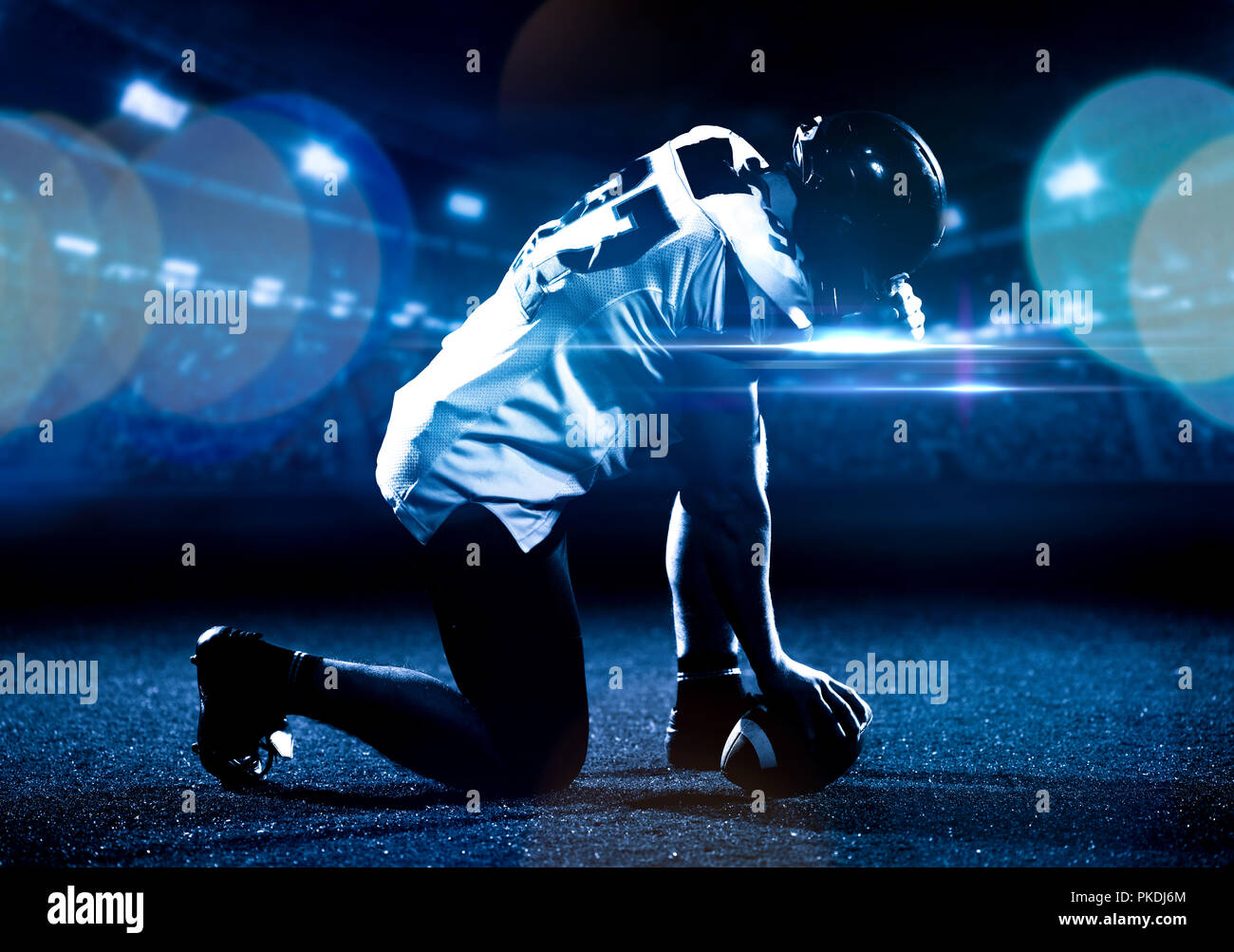 Portrait Of Young Confident American Football Player Standing On Field At Night Royalty Free Stock Image Storyblocks