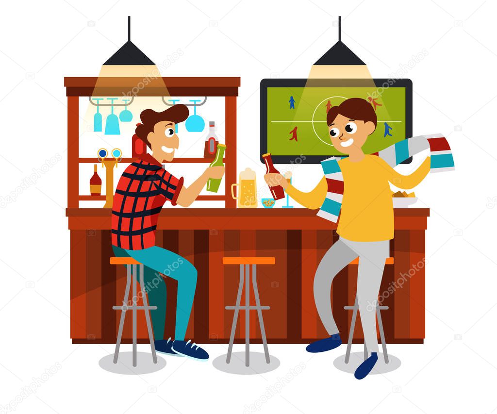 Cartoon Best Friends Watching Football Game In Bar Two Men Cheering For Sport Team Playing On Tv Vector Illustration Soccer And Sport Concept Isolated On White Background Premium Vector In Adobe