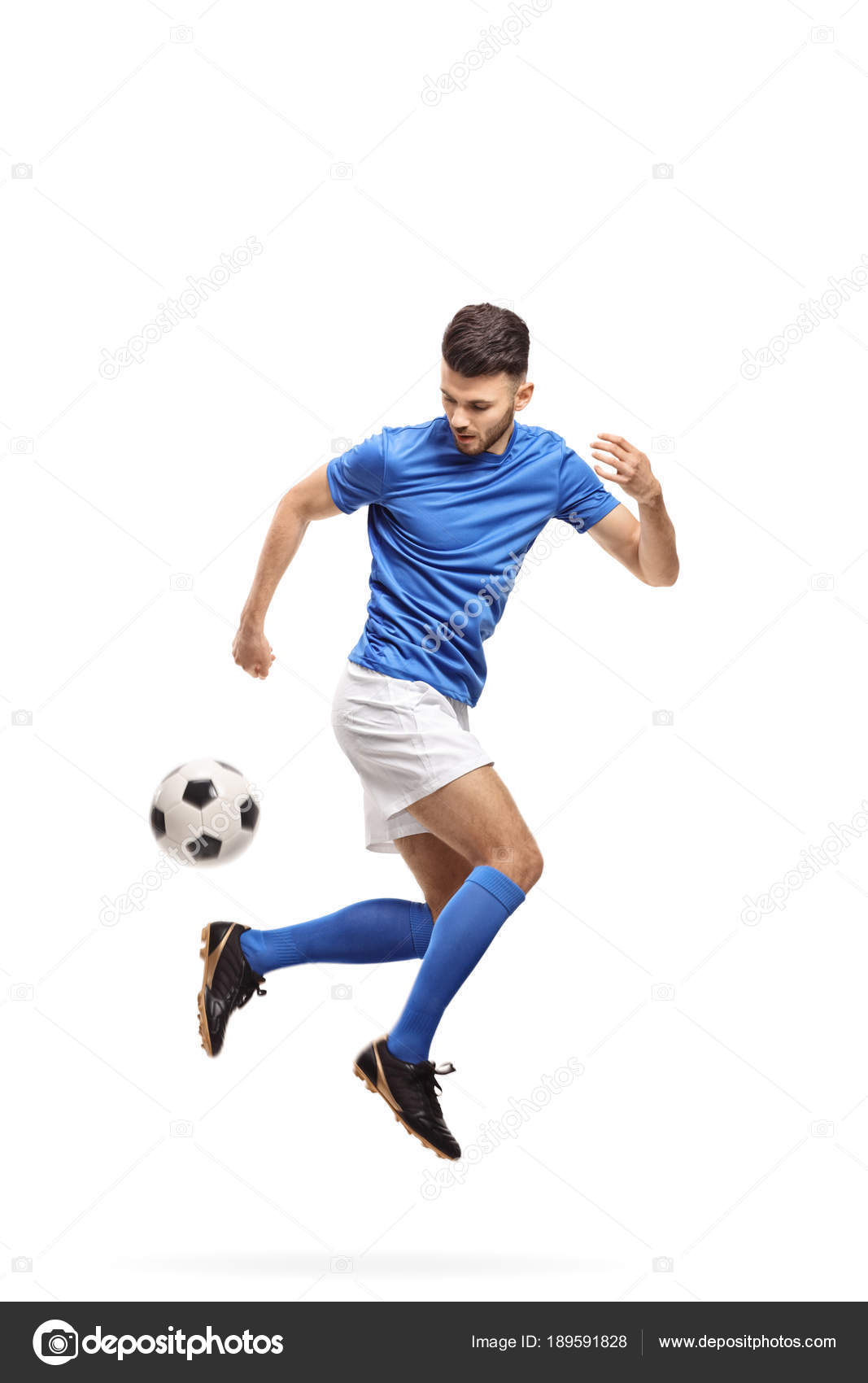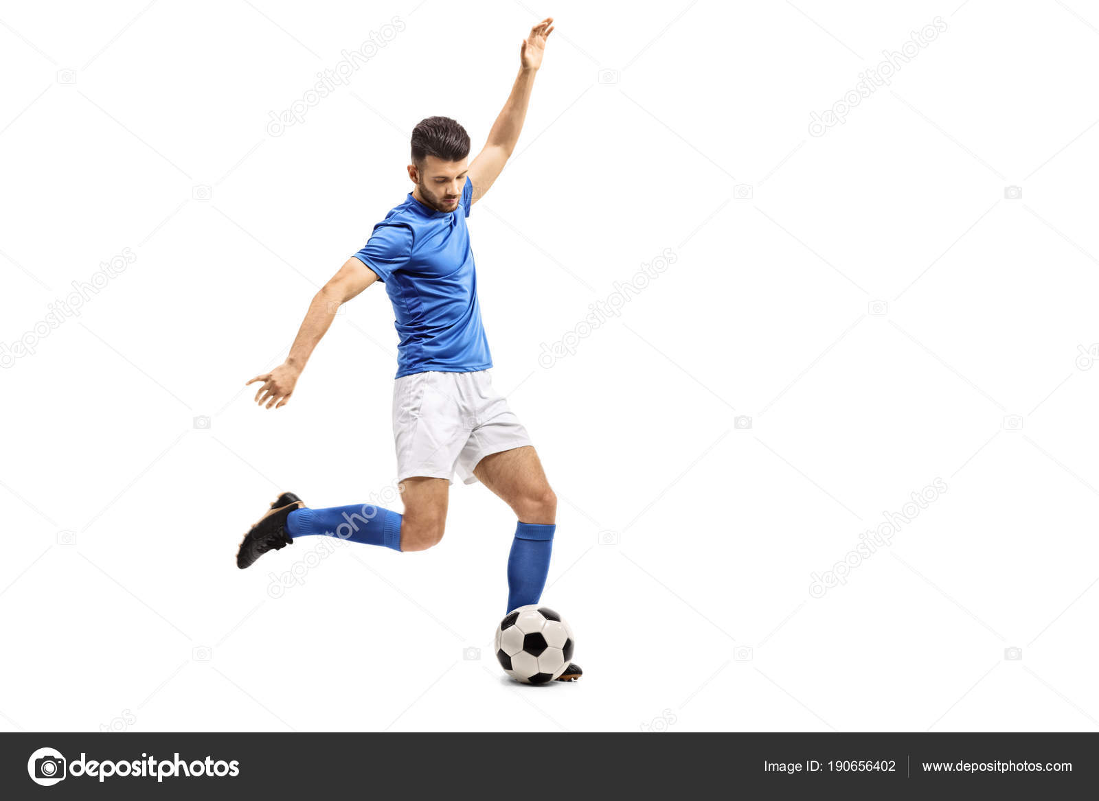 Soccer Player Kicking A Football Isolated On White Background Stock Photo Picture And Royalty Free Image Image 98113093