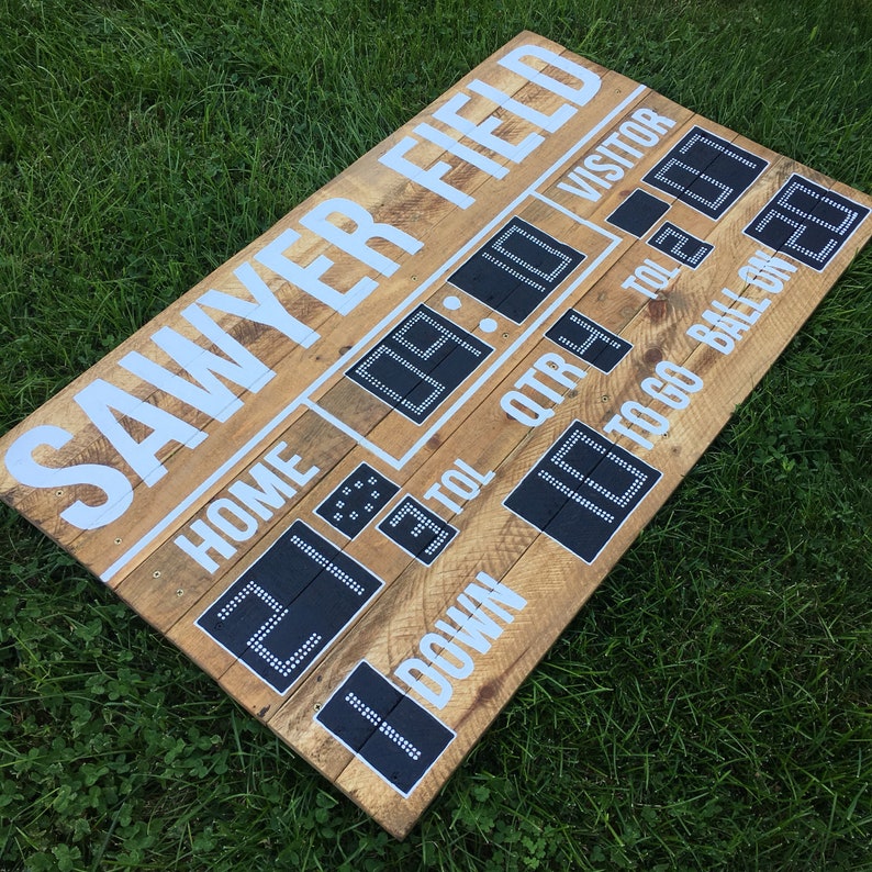 Custom Football Scoreboard Reclaimed Wood Artwork In 2020 Reclaimed Wood Artwork Football Scoreboard Custom Football