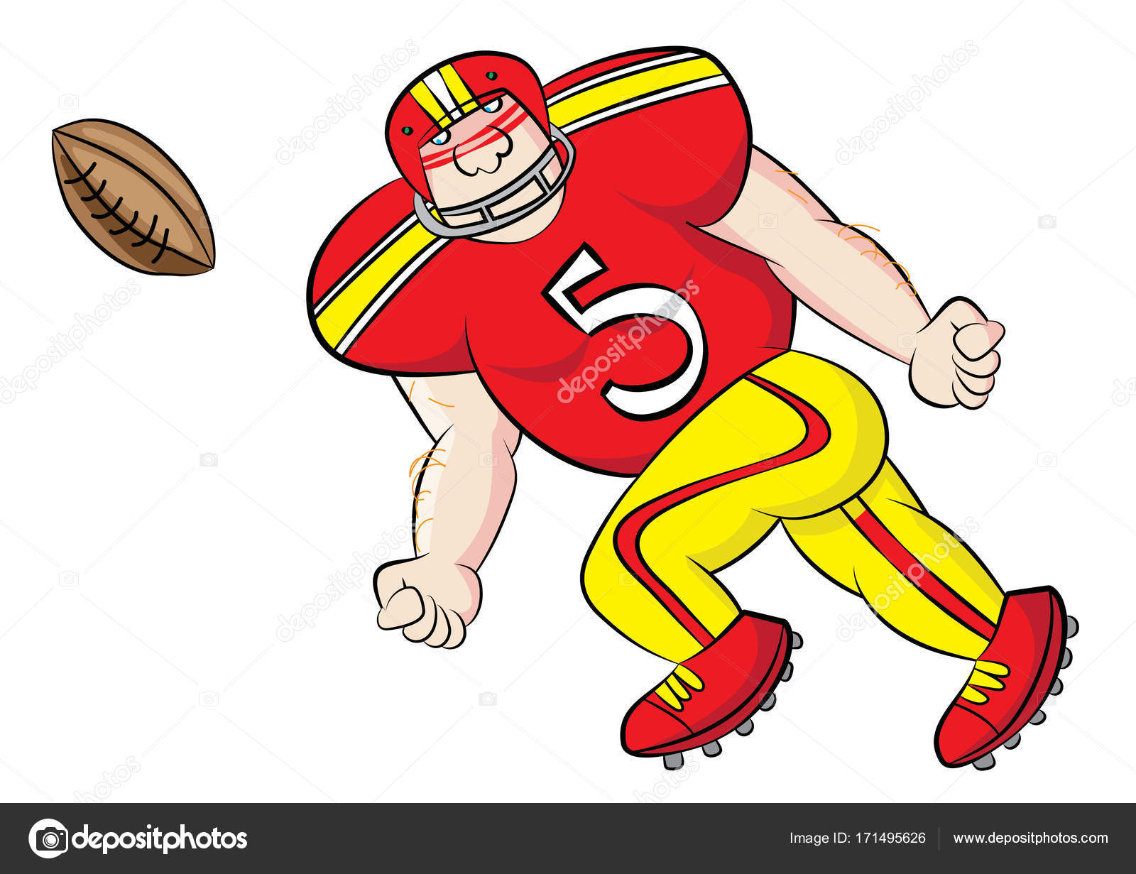 Cartoon Illustration Of Funny Boy American Football Player With Ball Stock Photo Alamy